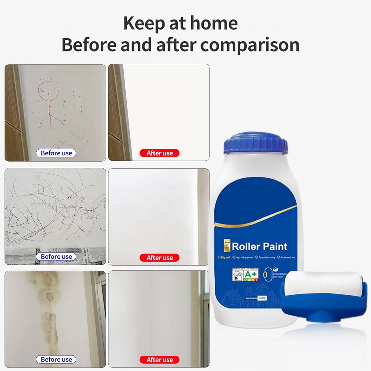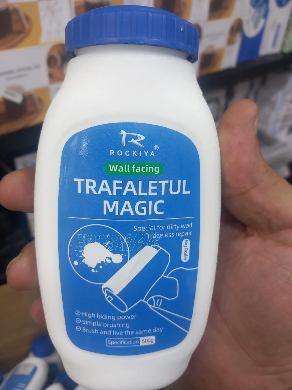 لجملة التسويقية: ودّع الخدوش والبقع والكتابات على الحوائط مع رول الدهان العملي، سهل الاستخدام وسريع النتيجة لإعادة جدران بيتك جديدة في ثوانٍ! 💡 مميزات المنتج: 1️⃣ قوة تغطية عالية: يضمن لك إخفاء الخدوش، البقع، والرسومات بسهولة تامة، بفضل دهان أبيض ناصع ينسجم مع معظم الدهانات الشائعة ويعيد للجدار مظهره المثالي. 2️⃣ خامة عالية الجودة وصديقة للبيئة: مصنوع من مادة الريزين ذات السيولة الممتازة، بلون أبيض مشرق لا يصفر مع الوقت. خالٍ من الفورمالدهيد والمعادن الضارة، آمن للأطفال، كبار السن، والحيوانات الأليفة. 3️⃣ تصميم مبتكر عملي: يجمع بين العلبة والفرشاة الدوارة في منتج واحد لتسهيل الإصلاح دون الحاجة إلى أدوات إضافية أو خلط معقد، مما يوفر الوقت والجهد. 4️⃣ سهولة الاستخدام وسرعة الجفاف: فقط افتح الغطاء وابدأ بالدهان مباشرة! يجف سطحياً خلال 30 دقيقة، يجف سريعاً خلال ساعتين، ويجف تماماً خلال 6 ساعات. 5️⃣ استخدامات متعددة: مثالي لإصلاح الجدران المتسخة، آثار الأقدام، خدوش الأثاث، بقع الزيت، الرطوبة، أو حتى كتابات الأطفال، ليعيد الحائط إلى حالته الأصلية بسرعة. 📦 تفاصيل سريعة: 🔹 الوزن: 500 جم 🔹 الخامة: ريزين عالي الجودة 🔹 اللون: أبيض 🔹 الحجم: 10.5 × 8.5 × 21 سم 🔹 الاستخدام: إصلاح سريع وسهل للجدران في المنزل أو المكتب 🔹 العبوة: زجاجة + رول دهان مدمج ✨ حل عملي وسريع لإصلاح الجدران في دقائق – جرب رول الدهان واستمتع بجدران جديدة بلا مجهود! 🖌️✨